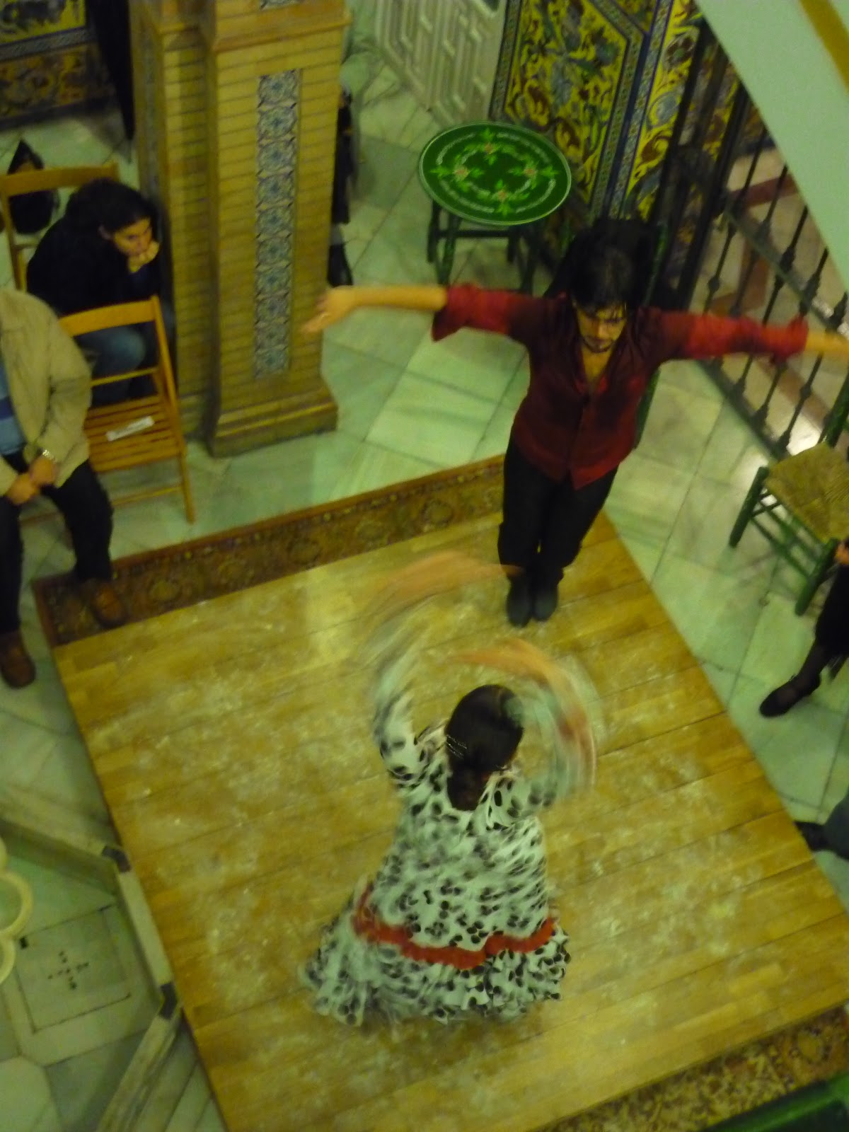 While my dancing has always been confined to sevillanas, a four-part dance with little variation, I’m enjoying my class, my maestra Carmen’s flamenco face when she raises her shoulders and the booty-dancing at the end of the bulerías routine. With just a few more hours of class left before I head up north, I’m savoring the last little bit of arte.