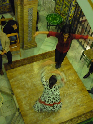 My vocabulary is now infused with sujeción, tango, compá. I own a pair of Roberto Garrado flamenco shoes with clavos, nails which have been hammered into the toe and heel to make the toc toc sound when you dance. Walking down the street become accented, depending on the compás we’ve just done in class. I love the Jeréz bulería: un DOS un dos TRES cuatro cinco seis SIETE OCHO nueve DIEZ.